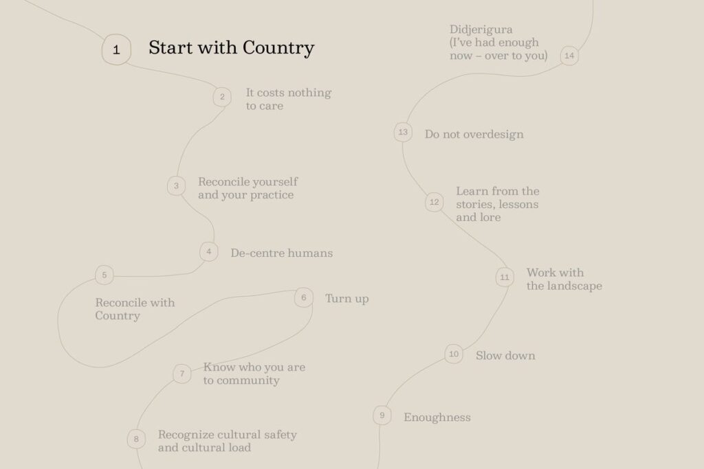 Danièle Hromek’s 14 principles for what non-Indigenous architects can do to Indigenize practice.